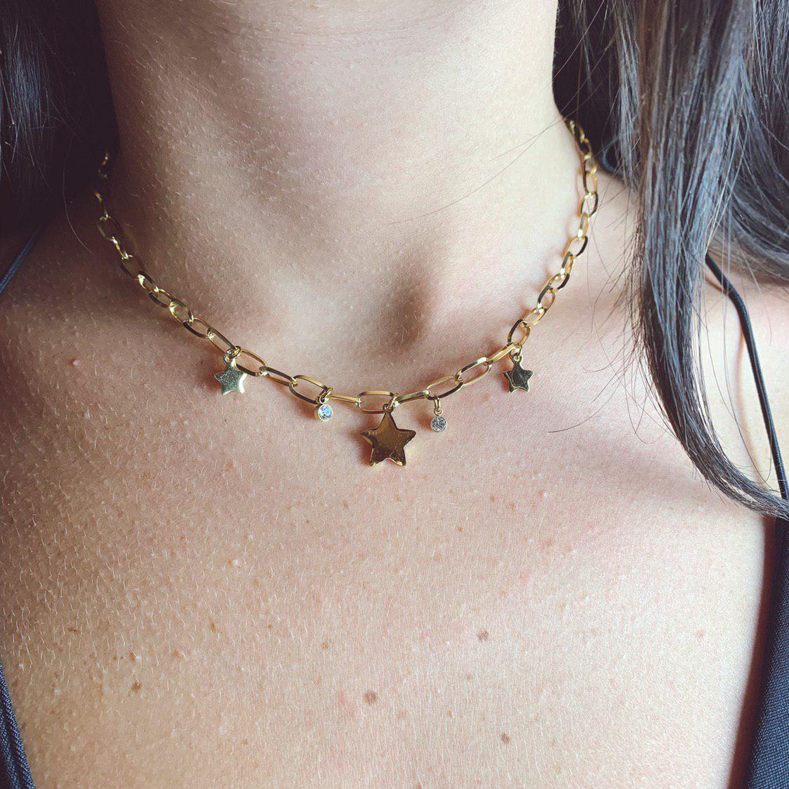 Una bellissima collana, con catena forzatina arricchita da stelline e punti luce