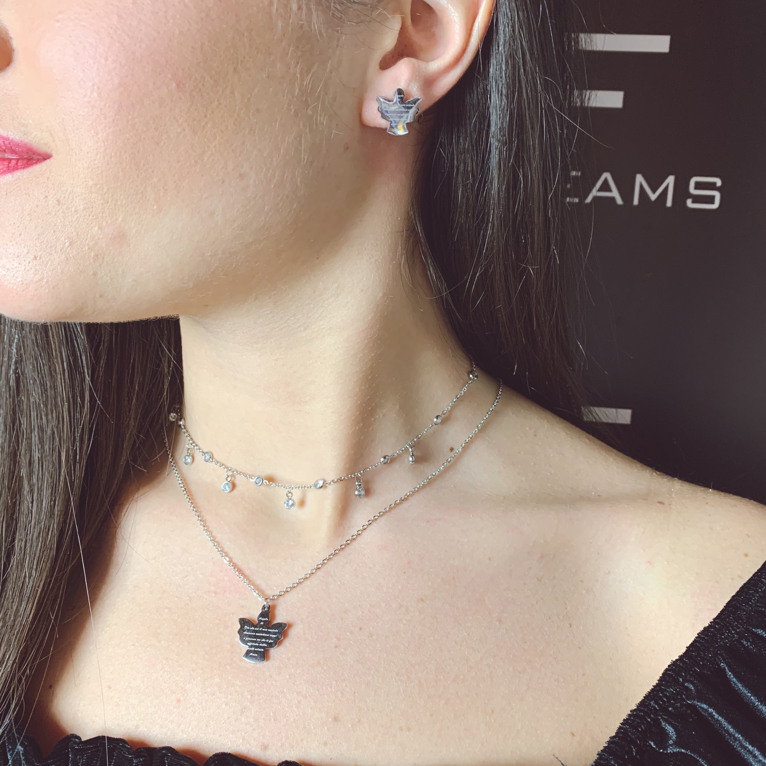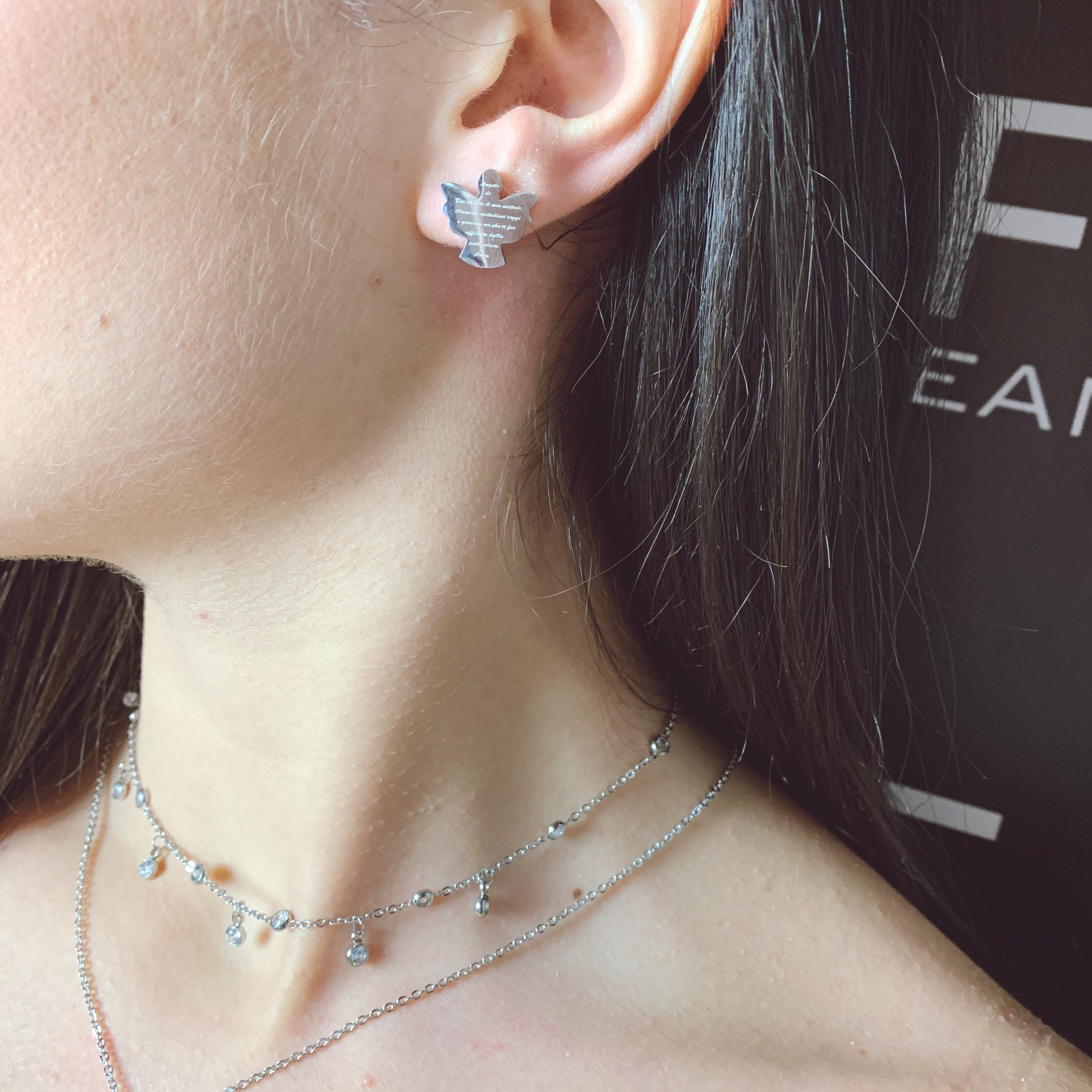 orecchini a lobo, con la preghiera dell'angelo custode