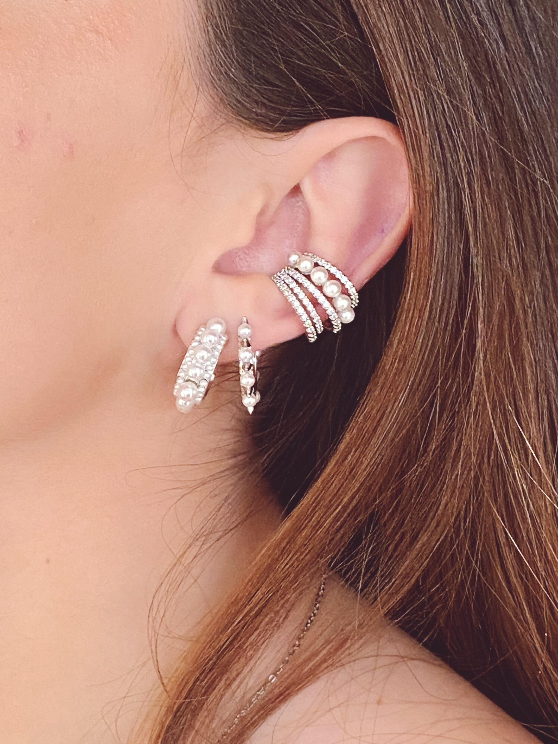 mono orecchino metallo e zirconi sintetici
