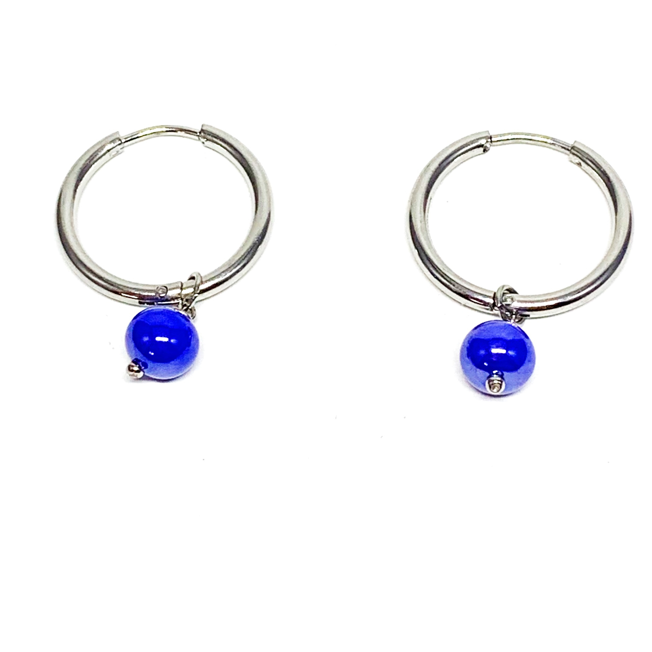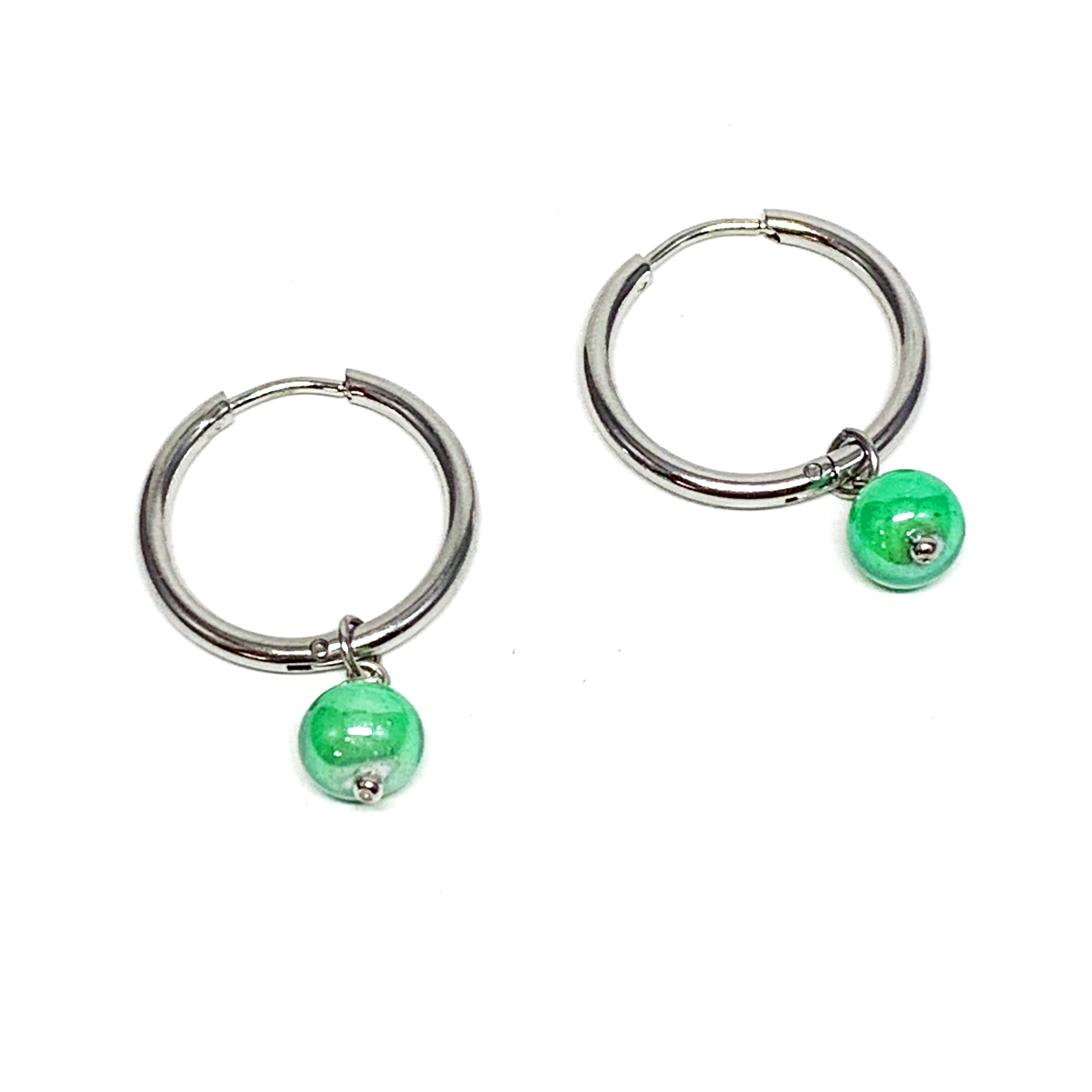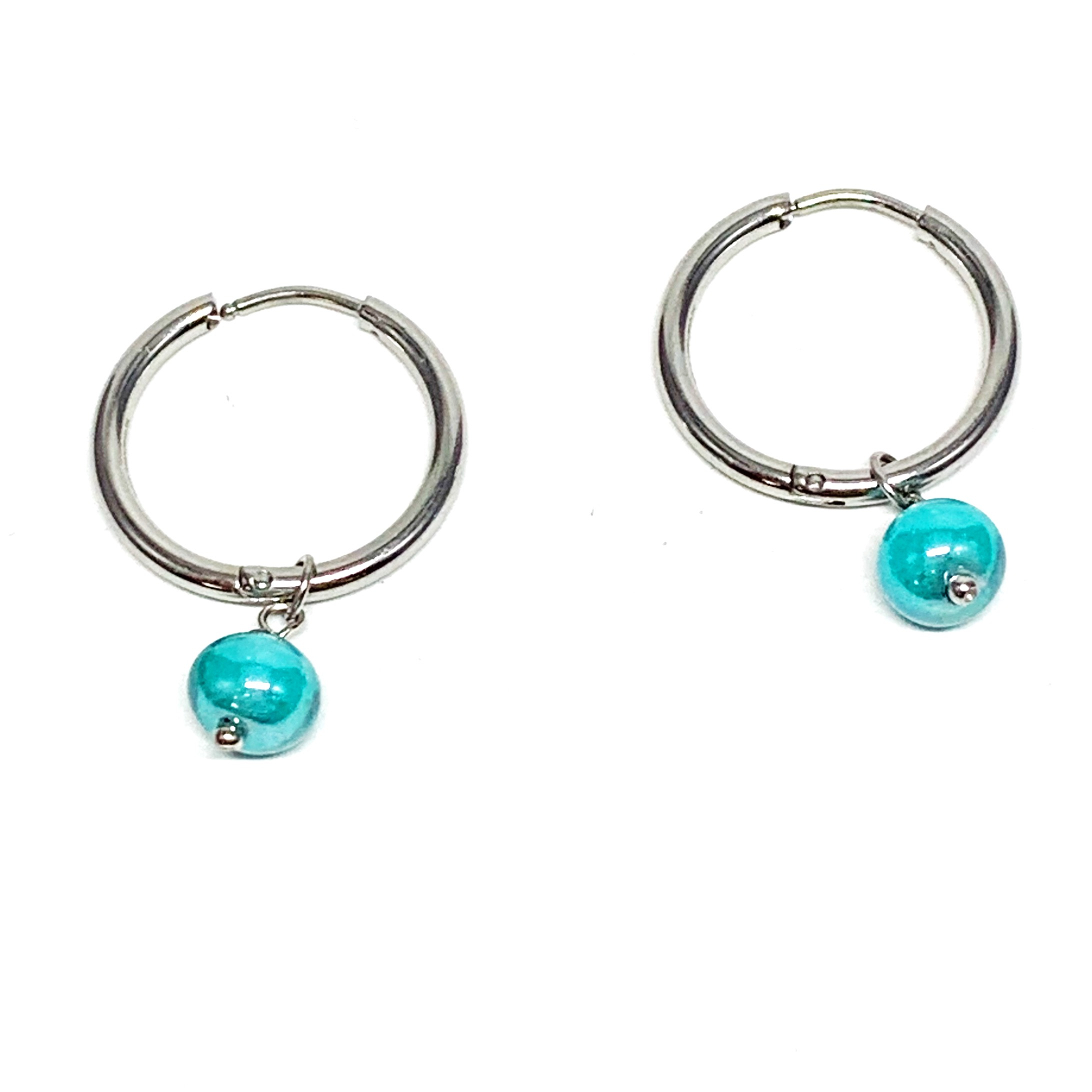 orecchini cerchietti in acciaio stainless steel e perla in vetro di murano
