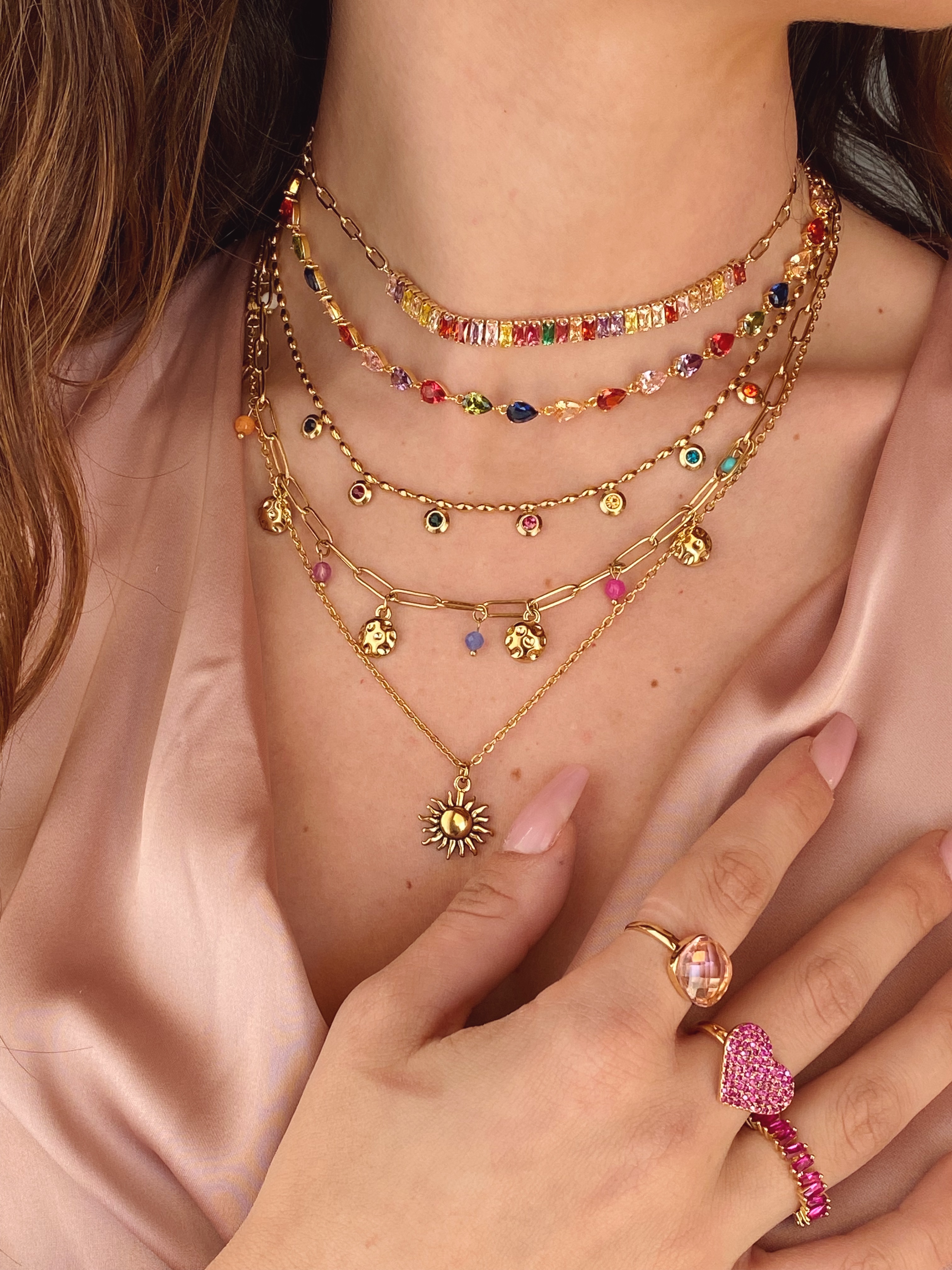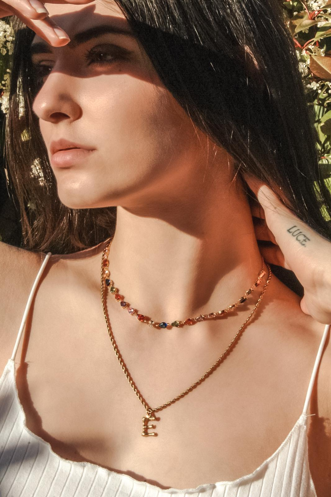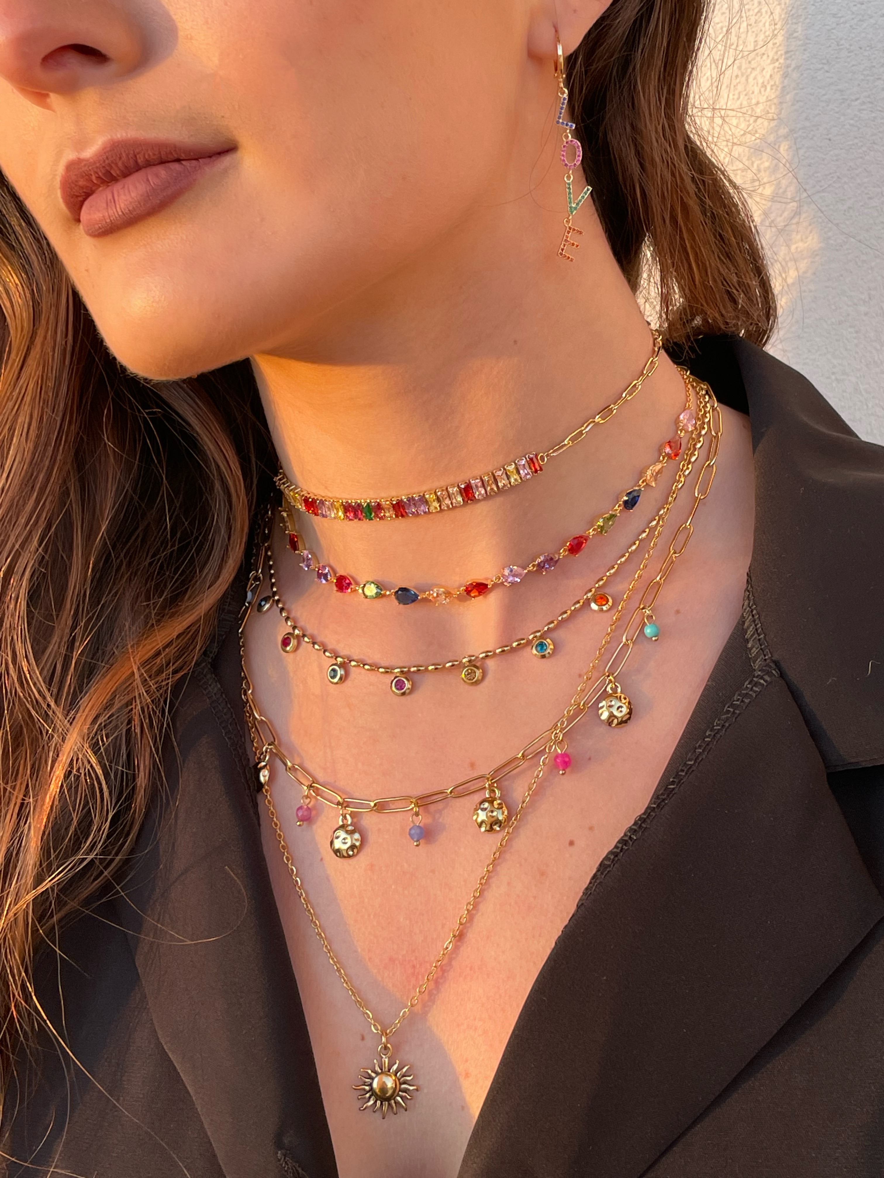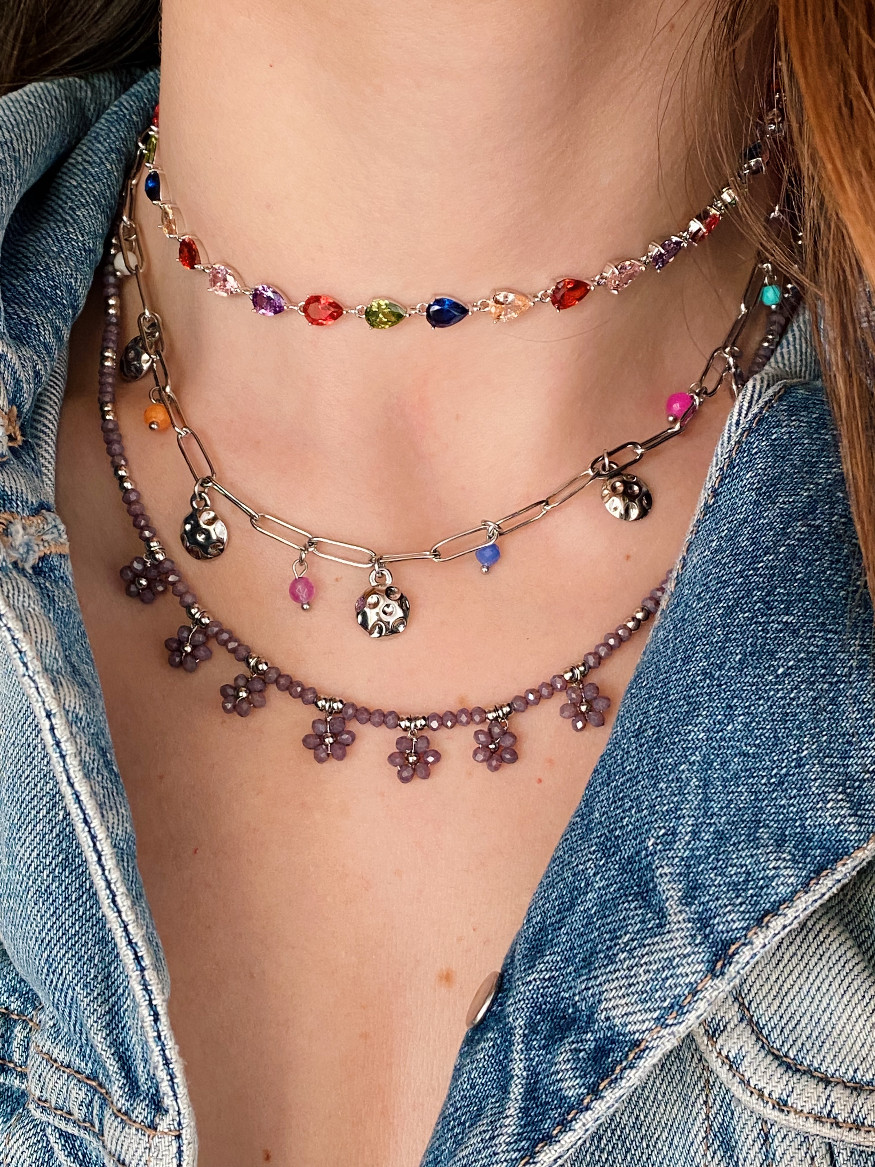 collana modello in acciaio e zirconi colorati