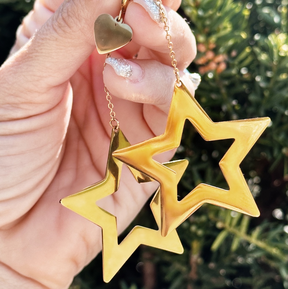 Bellissimi orecchini con cuoricino e maxi stella pendente