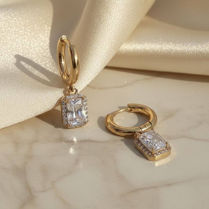 Bellissimi orecchini zircone rettangolare, perfetti per un look elegante!